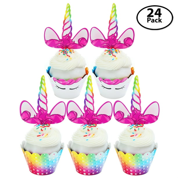 Unicorn Cupcake Toppers Cupcake Wrappers 24 Ct Walmart Com