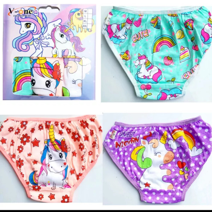 Jual 1 Pack Celana Dalam Anak Perempuan Motif Unicorn Isi 3 Pcs