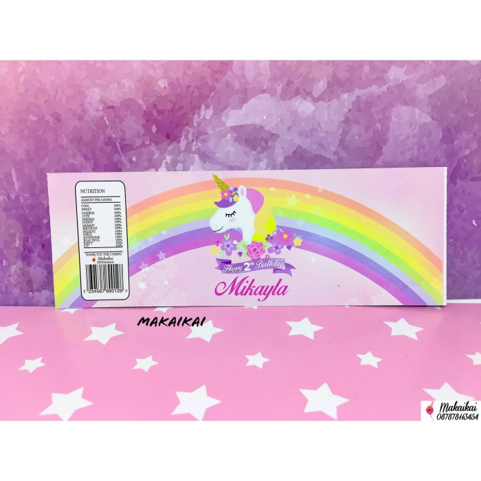 Dekorasi Pesta Botol Label Rainbow Unicorn Bottle Label Wraps