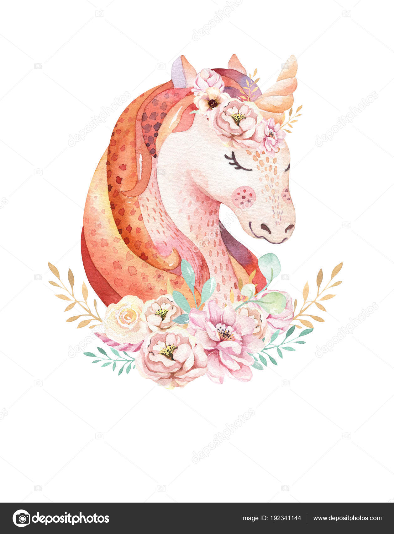 Isolated Cute Watercolor Unicorn Clipart Nursery Unicorn Flowers
